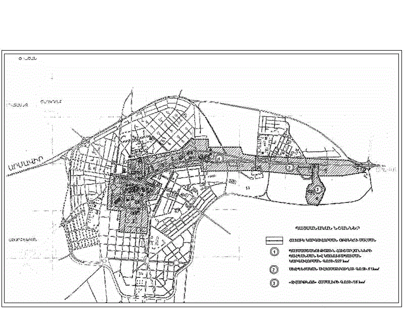 ●պատմամշակութային հուշարձանների պահպանության և կառուցապատման կարգավորման գոտին ●միջպետական ավտոմայրուղու գոտին ●«Զվարթնոց» համալիրի գոտին