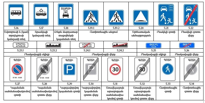 «52.20.1. 5.15.1-5.15.7 նշանների վրա պատկերված երթևեկության ուղղությունը ցույց տվող սլաքները կարող են ունենալ նաև այլ կոնֆիգուրացիաներ (ձևեր):»,