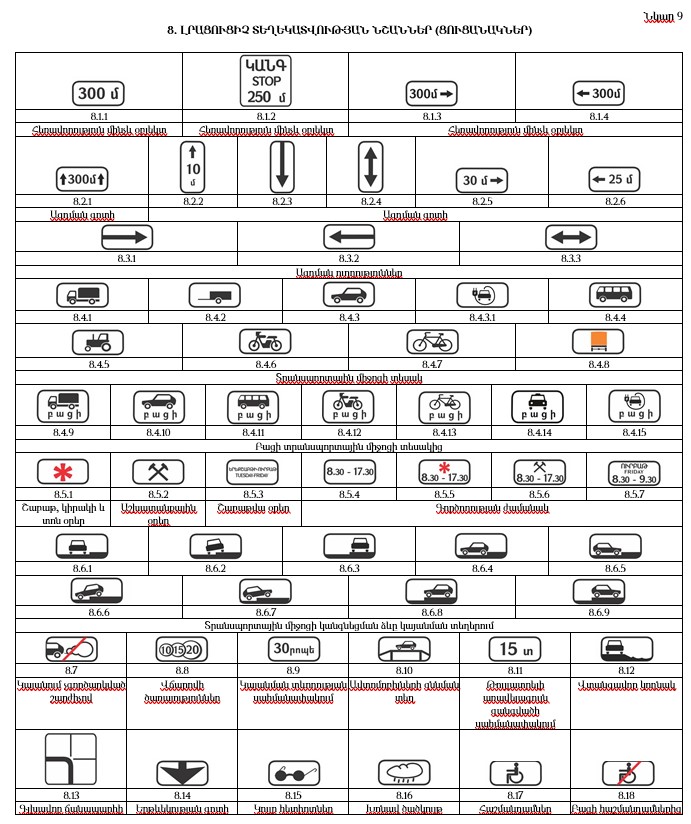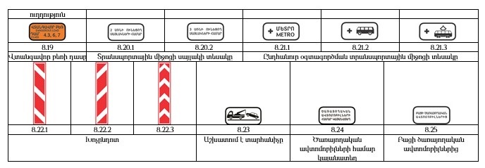 8.25. «Բացի ծառայողական ավտոմոբիլներից»: Ցուցանակի վրա կարող է նշվել կազմակերպության անվանումը:»,