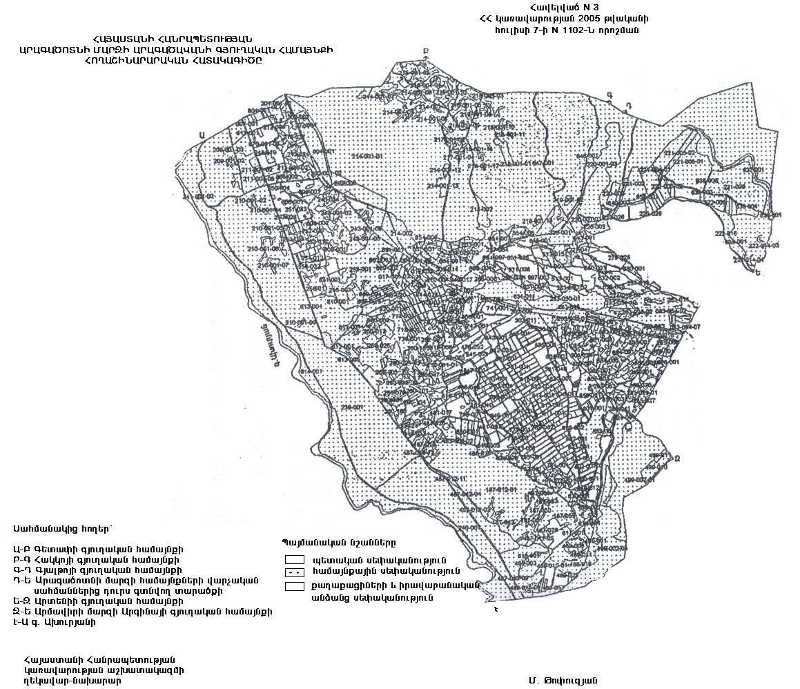 ՀԱՅԱՍՏԱՆԻ ՀԱՆՐԱՊԵՏՈՒԹՅԱՆ ԱՐԱԳԱԾՈՏՆԻ ՄԱՐԶԻ ԱՐԱԳԱԾԻ ԳՅՈՒՂԱԿԱՆ ՀԱՄԱՅՆՔԻ ՎԱՐՉԱԿԱՆ ՍԱՀՄԱՆՆԵՐՈՒՄ ԳՏՆՎՈՂ` ՊԵՏԱԿԱՆ ՍԵՓԱԿԱՆՈՒԹՅՈՒՆ ՀԱՆԴԻՍԱՑՈՂ ՀՈՂԵՐԻՑ ԱՐԱԳԱԾԻ ԳՅՈՒՂԱԿԱՆ ՀԱՄԱՅՆՔԻՆ ԱՆՀԱՏՈՒՅՑ ՓՈԽԱՆՑՎՈՂ ՀՈՂԵՐԻ (ԸՍՏ ՆՊԱՏԱԿԱՅԻՆ ՆՇԱՆԱԿՈՒԹՅԱՆ)
