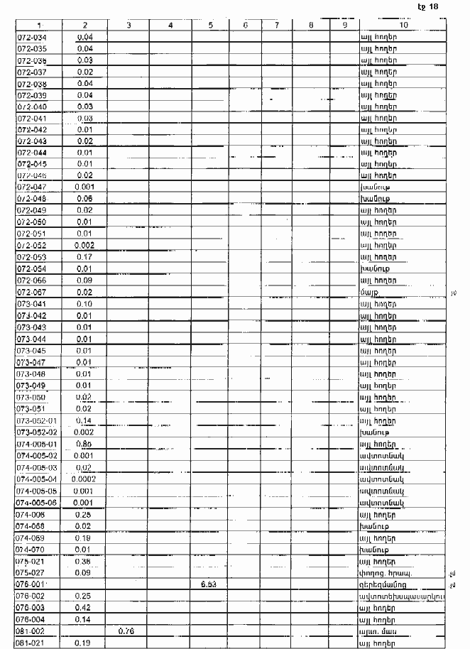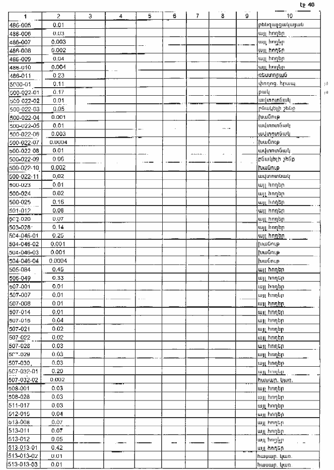 ԸՆԴԱՄԵՆԸ` ՀՈՂԵՐ (1+2+3+4+5+6+7+8+9) |