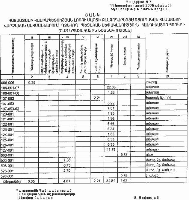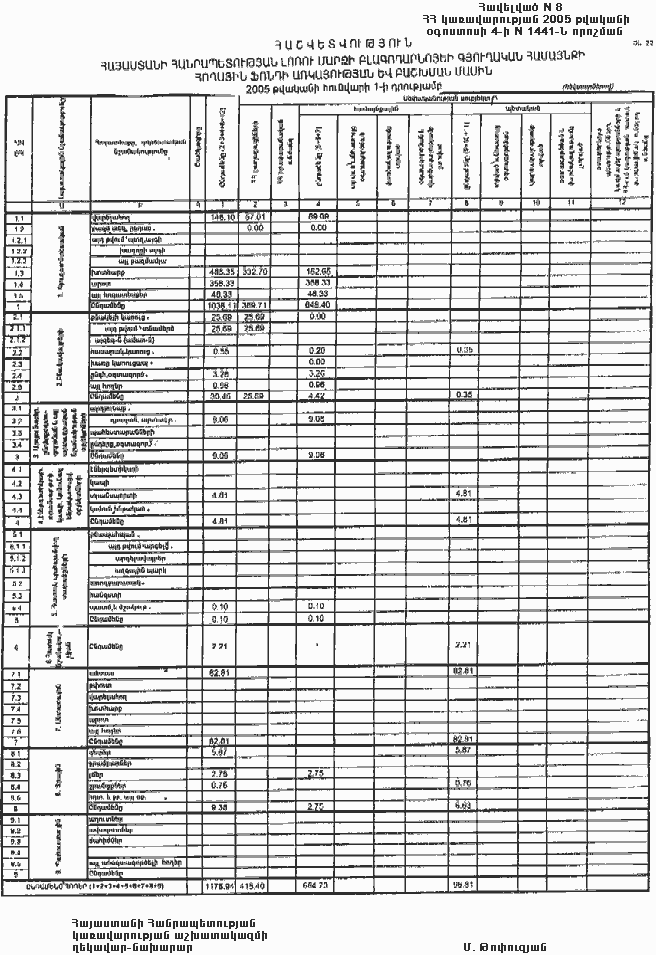 4 օգոստոսի 2005 թվականի N 1441-Ն