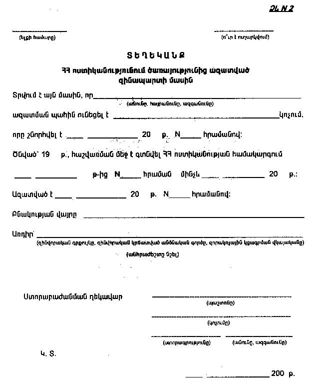 _____________________________ զինկոմիսարիատում զինվորական հաշվառումից