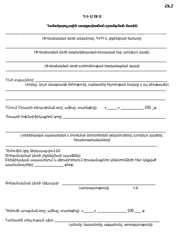 2.2. ՀՍ-ում պետք է տեղադրված լինի Ծրագիր, որը ապահովի տվյալների մուտքագրման և մշակման հնարավորություն, ինչպես նաև ապահովի դրանց պաշտպանվածությունը այլ ծրագրերով դիտարկումներից և փոփոխություններից: