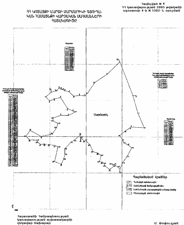 4) Մարմարիկի գյուղական համայնքի վարչական սահմանների նկարագիրը` համաձայն NN 4 և 41 հավելվածների,