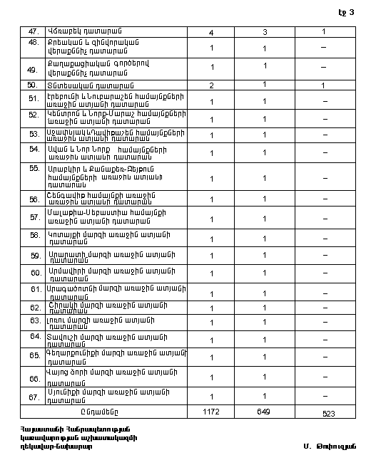 52. Հայաստանի Հանրապետության վճռաբեկ և տնտեսական դատարաններին սպասարկելու համար այդ դատարաններին հատկացվում է մեկական ծառայողական ավտոմեքենա: