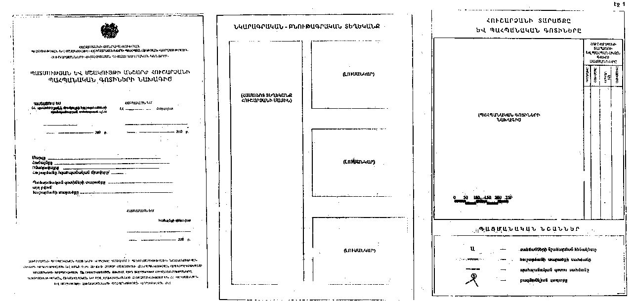 զ) պատմաճարտարապետական հենակետային հատակագծերը, բնակավայրի պատմամշակութային հիմնավորման նախագծերը, քարտեզագրման ու վավերագրման վերաբերյալ նյութերը.