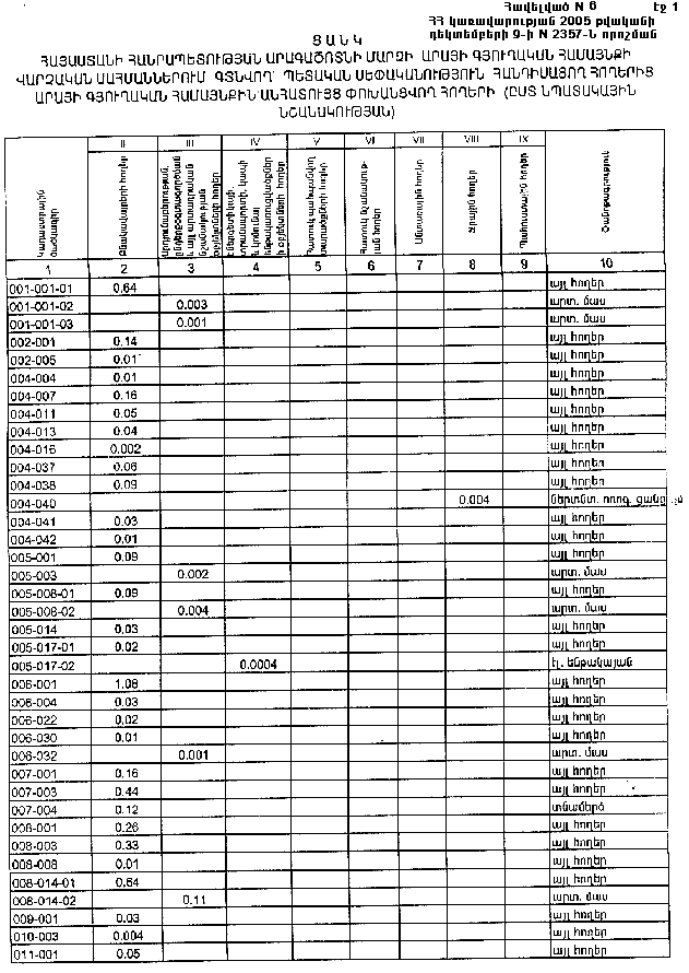 ՀԱՅԱՍՏԱՆԻ ՀԱՆՐԱՊԵՏՈՒԹՅԱՆ ԱՐԱԳԱԾՈՏՆԻ ՄԱՐԶԻ ԱՐԱՅԻ ԳՅՈՒՂԱԿԱՆ ՀԱՄԱՅՆՔԻ ՎԱՐՉԱԿԱՆ ՍԱՀՄԱՆՆԵՐՈՒՄ ԳՏՆՎՈՂ` ՊԵՏԱԿԱՆ ՍԵՓԱԿԱՆՈՒԹՅՈՒՆ ՀԱՆԴԻՍԱՑՈՂ ՀՈՂԵՐԻՑ ԱՐԱՅԻ ԳՅՈՒՂԱԿԱՆ ՀԱՄԱՅՆՔԻՆ ԱՆՀԱՏՈՒՅՑ ՓՈԽԱՆՑՎՈՂ ՀՈՂԵՐԻ (ԸՍՏ ՆՊԱՏԱԿԱՅԻՆ ՆՇԱՆԱԿՈՒԹՅԱՆ)