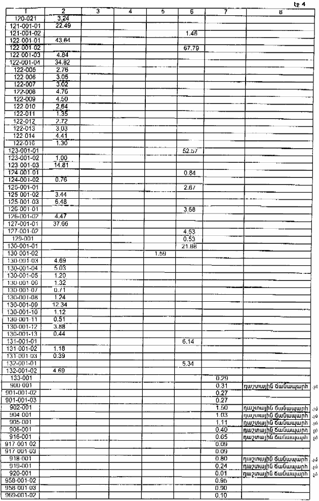 4. Ընդունել ի գիտություն Հայաստանի Հանրապետության Գեղարքունիքի մարզի Այրքի գյուղական համայնքի հողային ֆոնդի առկայության և բաշխման մասին հաշվետվությունը` 2005 թվականի հունվարի 1-ի դրությամբ` համաձայն NN 8 և 9 հավելվածների: