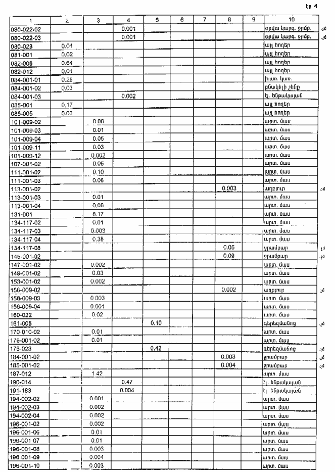 4. Ընդունել ի գիտություն Հայաստանի Հանրապետության Տավուշի մարզի Ներքին Կարմիր աղբյուրի գյուղական համայնքի հողային ֆոնդի առկայության և բաշխման մասին հաշվետվությունը՝ 2005 թվականի հունվարի 1-ի դրությամբ՝ համաձայն NN 8 և 9 հավելվածների: