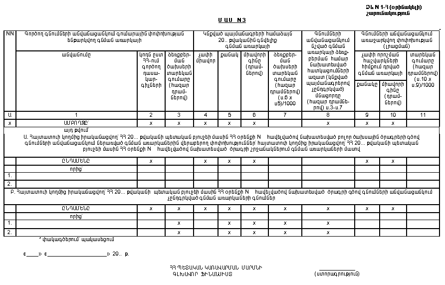 ՀՀ 200.. ԹՎԱԿԱՆԻ ՊԵՏԱԿԱՆ ԲՅՈՒՋԵՈՎ ՀԱՍՏԱՏՎԱԾ ՊԵՏՈՒԹՅԱՆ ԿԱՐԻՔՆԵՐԻ ՀԱՄԱՐ ԳՆՈՒՄՆԵՐԻ ԱՆՎԱՆԱՑԱՆԿՈՒՄ ՓՈՓՈԽՈՒԹՅՈՒՆՆԵՐԻ ԵՎ/ԿԱՄ ԼՐԱՑՈՒՄՆԵՐԻ ՄԱՍԻՆ