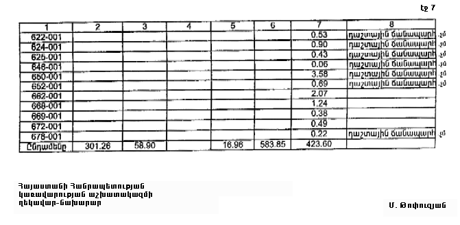 7. Հայաստանի Հանրապետության Արագածոտնի մարզպետին՝ Հայաստանի Հանրապետության կառավարության 2000 թվականի հոկտեմբերի 23-ի N 656 որոշմամբ սահմանված կարգով՝ սկզբնական հաշվառման տվյալների հիման վրա ապահովել մարզի տարածքում ընթացիկ հաշվառման աշխատանքների իրականացումը: