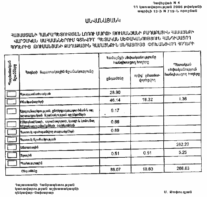 ՀԱՅԱՍՏԱՆԻ ՀԱՆՐԱՊԵՏՈՒԹՅԱՆ ԼՈՌՈՒ ՄԱՐԶԻ ԹՈՒՄԱՆՅԱՆԻ ՔԱՂԱՔԱՅԻՆ ՀԱՄԱՅՆՔԻ ՎԱՐՉԱԿԱՆ ՍԱՀՄԱՆՆԵՐՈՒՄ ԳՏՆՎՈՂ` ՊԵՏԱԿԱՆ ՍԵՓԱԿԱՆՈՒԹՅՈՒՆ ՀԱՆԴԻՍԱՑՈՂ ՀՈՂԵՐԻՑ ԹՈՒՄԱՆՅԱՆԻ ՔԱՂԱՔԱՅԻՆ ՀԱՄԱՅՆՔԻՆ ԱՆՀԱՏՈՒՅՑ ՓՈԽԱՆՑՎՈՂ ՀՈՂԵՐԻ