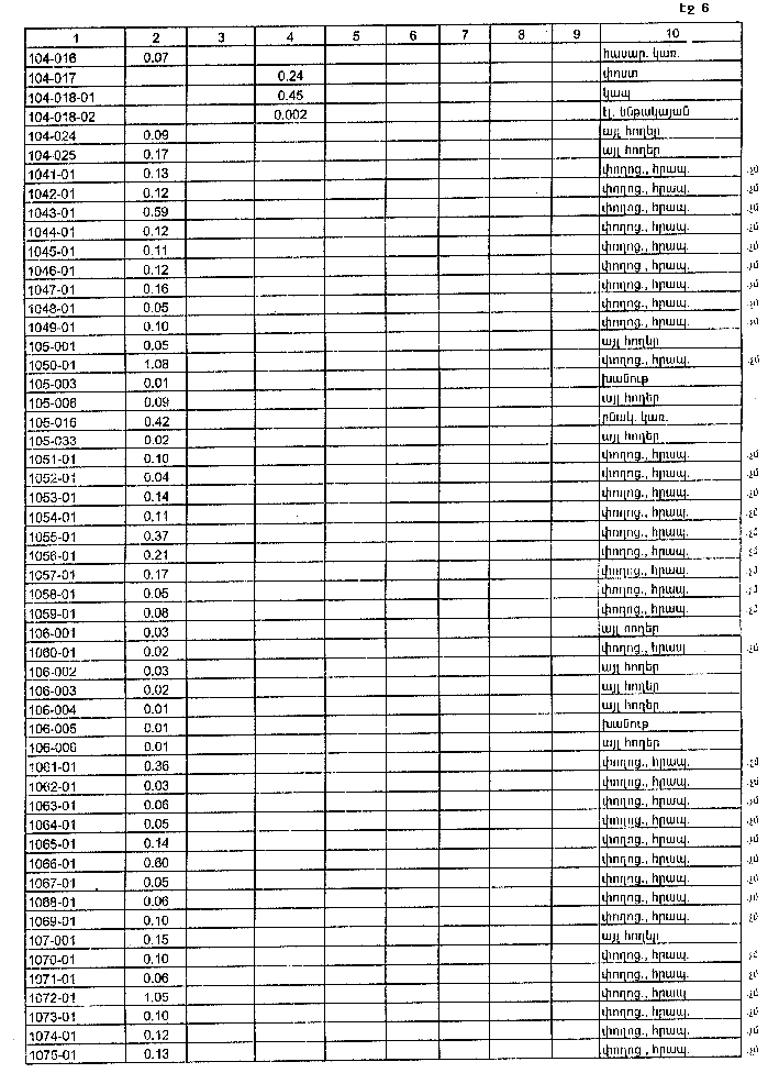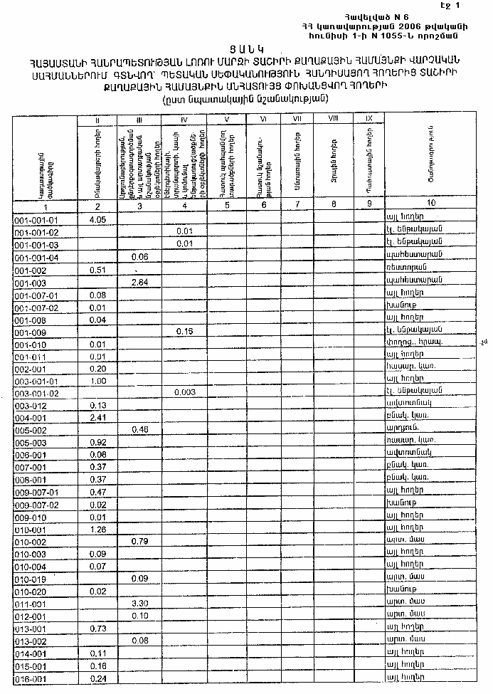 6. Թույլատրել Հայաստանի Հանրապետության կառավարությանն առընթեր անշարժ գույքի կադաստրի պետական կոմիտեի նախագահին Հայաստանի Հանրապետության պետական գեոդեզիական ցանցի հավասարակշռման արդյունքների հիման վրա Հայաստանի Հանրապետության վարչատարածքային միավորների սահմանանիշերի կոորդինատների ժողովածուի հրատարակումից հետո հողային ֆոնդի ընթացիկ հաշվառման ժամանակ Հայաստանի Հանրապետության Լոռու մարզի Տաշիրի քաղաքային համայնքի հողային հաշվեկշռում սահմանված կարգով կատարել համապատասխան փոփոխություններ: