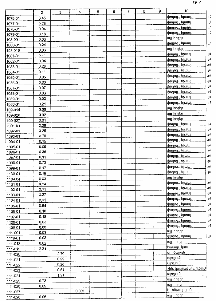7. Հայաստանի Հանրապետության Լոռու մարզպետին` Հայաստանի Հանրապետության կառավարության 2000 թվականի հոկտեմբերի 23-ի N 656 որոշմամբ սահմանված կարգով` սկզբնական հաշվառման տվյալների հիման վրա ապահովել մարզի տարածքում ընթացիկ հաշվառման աշխատանքների իրականացումը: