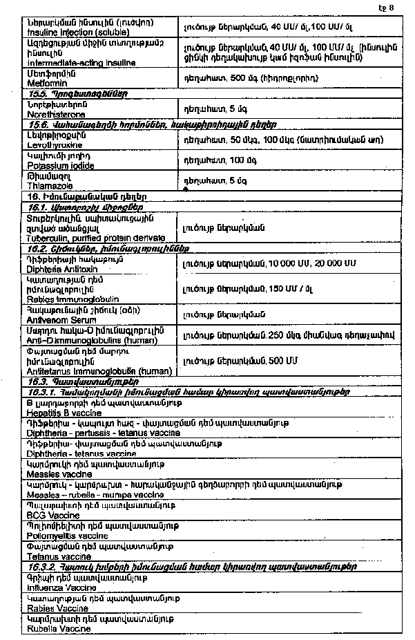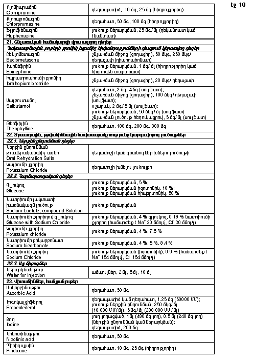 (ցանկը լրաց. 28.04.05 N 406-Ն, 20.07.05 N 683-Ն, 16.03.06 N 261-Ն, փոփ., լրաց. 28.08.06 N 981-Ն)