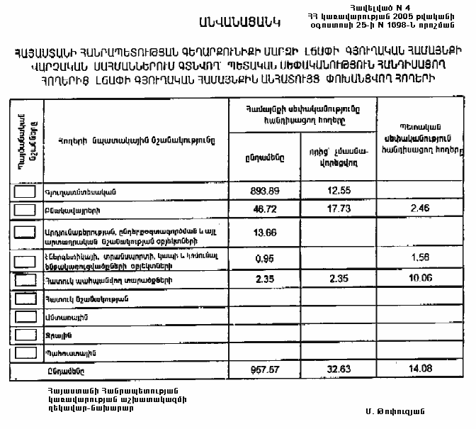 4. Ընդունել ի գիտություն Հայաստանի Հանրապետության Գեղարքունիքի մարզի Լճափի գյուղական համայնքի հողային ֆոնդի առկայության և բաշխման մասին հաշվետվությունը` 2005 թվականի հունվարի 1-ի դրությամբ` համաձայն NN 8 և 9 հավելվածների: