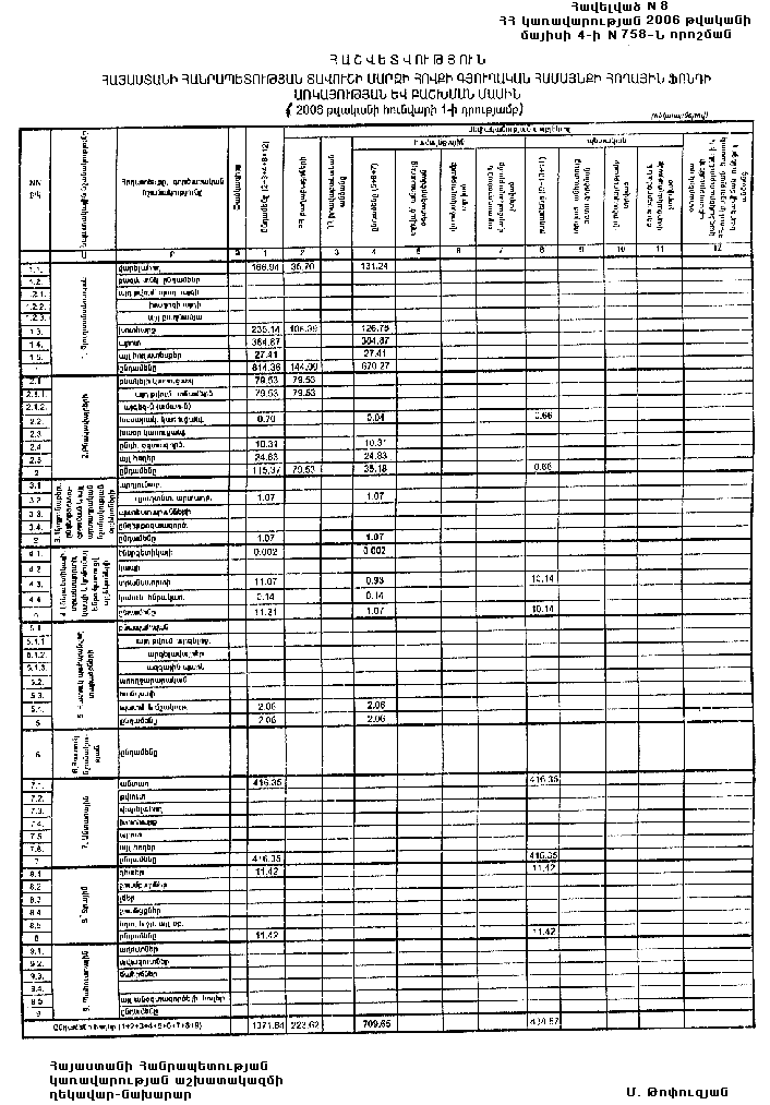 4. Ընդունել ի գիտություն Հայաստանի Հանրապետության Տավուշի մարզի Հովքի գյուղական համայնքի հողային ֆոնդի առկայության և բաշխման մասին հաշվետվությունը` 2006 թվականի հունվարի 1-ի դրությամբ` համաձայն NN 8 և 9 հավելվածների: