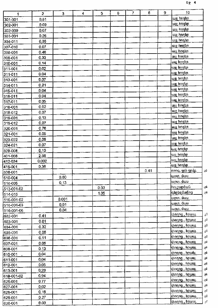 4. Ընդունել ի գիտություն Հայաստանի Հանրապետության Արագածոտնի մարզի Երնջատափի գյուղական համայնքի հողային ֆոնդի առկայության և բաշխման մասին հաշվետվությունը՝ 2005 թվականի հունվարի 1-ի դրությամբ՝ համաձայն NN 8 և 9 հավելվածների: