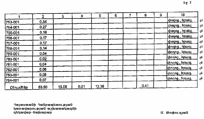 7. Հայաստանի Հանրապետության Արագածոտնի մարզպետին՝ Հայաստանի Հանրապետության կառավարության 2000 թվականի հոկտեմբերի 23-ի N 656 որոշմամբ սահմանված կարգով՝ սկզբնական հաշվառման տվյալների հիման վրա ապահովել մարզի տարածքում ընթացիկ հաշվառման աշխատանքների իրականացումը: