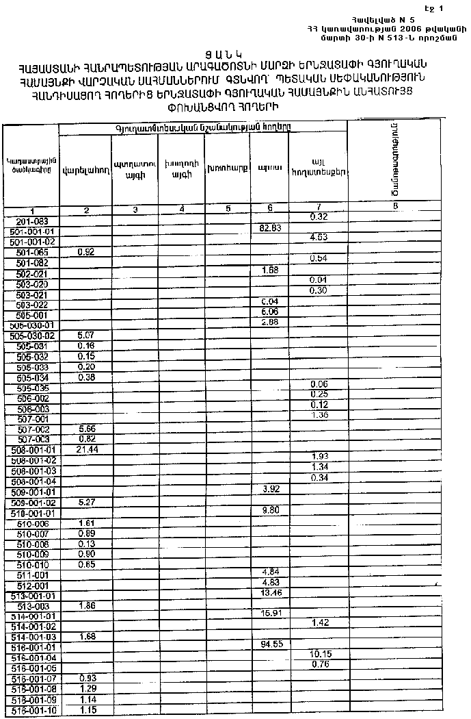 (հավելվածն ուժը կորցրել է 14.10.10 N 1359-Ն)