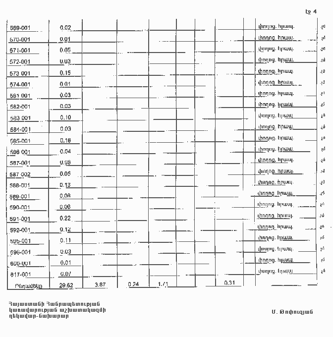 4. Ընդունել ի գիտություն Հայաստանի Հանրապետության Տավուշի մարզի Կիրանցի գյուղական համայնքի հողային ֆոնդի առկայության և բաշխման մասին հաշվետվությունը՝ 2005 թվականի հունվարի 1-ի դրությամբ՝ համաձայն NN 8 և 9 հավելվածների: