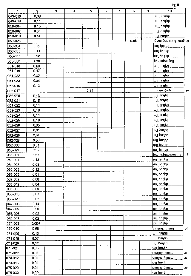 4. Ընդունել ի գիտություն Հայաստանի Հանրապետության Արագածոտնի մարզի Փարպիի գյուղական համայնքի հողային ֆոնդի առկայության և բաշխման մասին հաշվետվությունը՝ 2005 թվականի հունվարի 1-ի դրությամբ՝ համաձայն NN 8 և 9 հավելվածների: