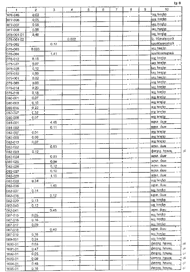 6. Թույլատրել Հայաստանի Հանրապետության կառավարությանն առընթեր անշարժ գույքի կադաստրի պետական կոմիտեի նախագահին Հայաստանի Հանրապետության պետական գեոդեզիական ցանցի հավասարակշռման արդյունքների հիման վրա Հայաստանի Հանրապետության վարչատարածքային միավորների սահմանանիշերի կոորդինատների ժողովածուի հրատարակումից հետո հողային ֆոնդի ընթացիկ հաշվառման ժամանակ Հայաստանի Հանրապետության Արագածոտնի մարզի Փարպիի գյուղական համայնքի հողային հաշվեկշռում սահմանված կարգով կատարել համապատասխան փոփոխություններ: