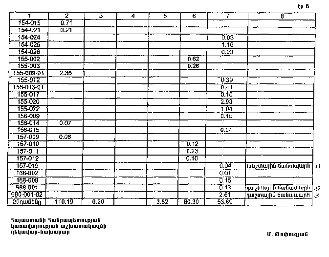 4. Ընդունել ի գիտություն Հայաստանի Հանրապետության Արագածոտնի մարզի Փարպիի գյուղական համայնքի հողային ֆոնդի առկայության և բաշխման մասին հաշվետվությունը՝ 2005 թվականի հունվարի 1-ի դրությամբ՝ համաձայն NN 8 և 9 հավելվածների: