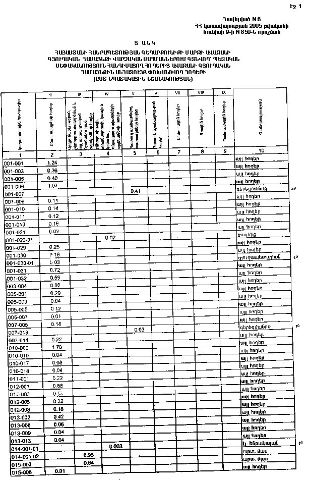9 հունիսի 2005 թվականի N 850-Ն