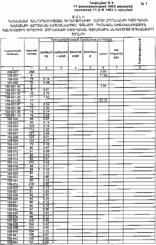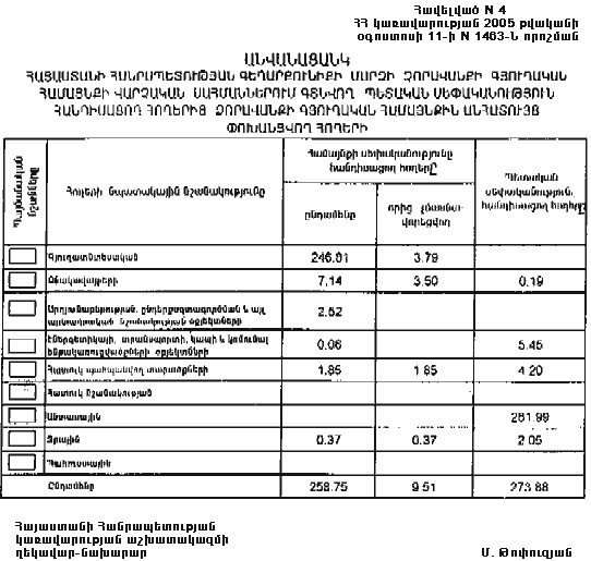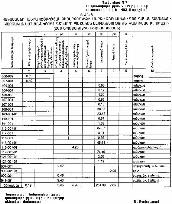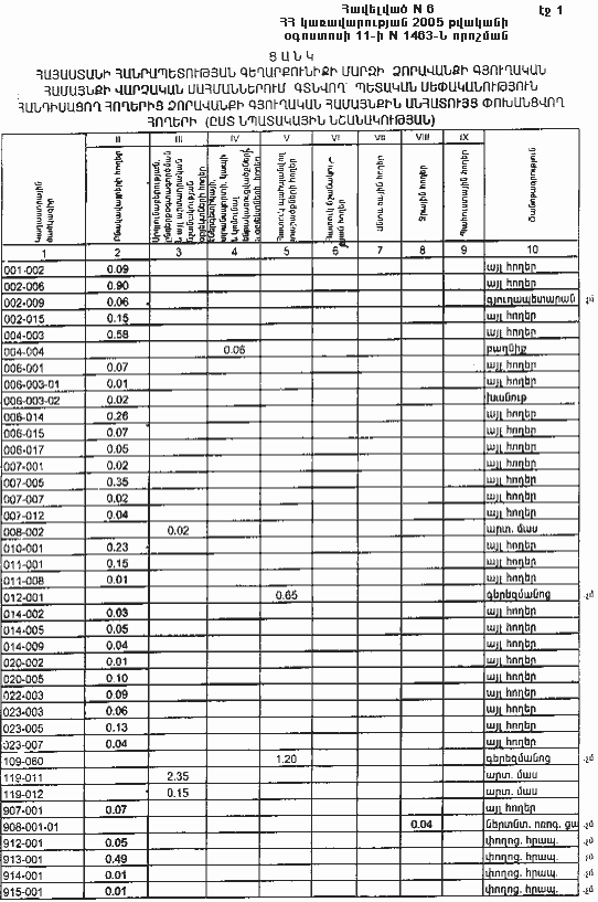 11 օգոստոսի 2005 թվականի N 1463-Ն