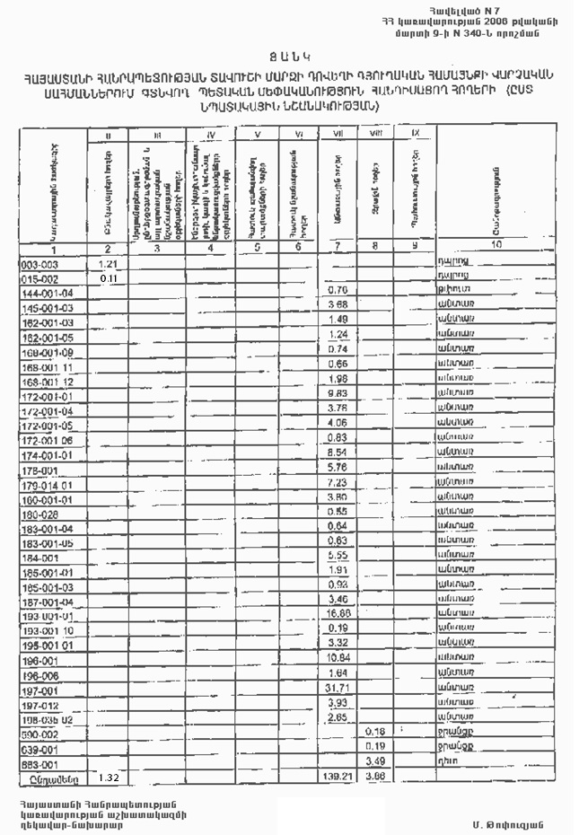 բ) Հայաստանի Հանրապետության Տավուշի մարզի Դովեղի գյուղական համայնքի վարչական սահմաններում գտնվող հողերից 144.39 հեկտարը համարվում է պետական սեփականություն՝ համաձայն N 7 հավելվածի: