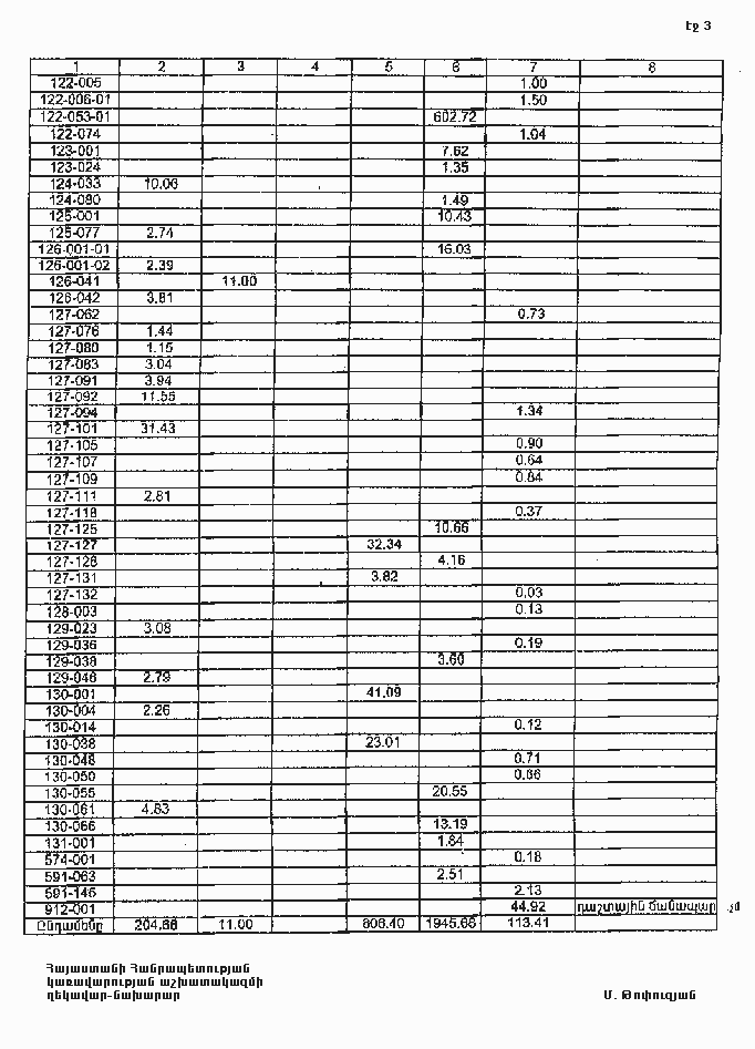 4. Ընդունել ի գիտություն Հայաստանի Հանրապետության Լոռու մարզի Պրիվոլնոյեի գյուղական համայնքի հողային ֆոնդի առկայության և բաշխման մասին հաշվետվությունը` 2005 թվականի հունվարի 1-ի դրությամբ` համաձայն N 8 հավելվածի: