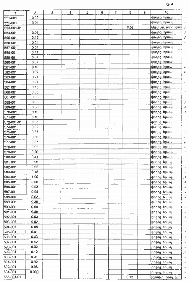 4. Ընդունել ի գիտություն Հայաստանի Հանրապետության Գեղարքունիքի մարզի Դպրաբակի գյուղական համայնքի հողային ֆոնդի առկայության և բաշխման մասին հաշվետվությունը՝ 2005 թվականի հունվարի 1-ի դրությամբ՝ համաձայն NN 8 և 9 հավելվածների: