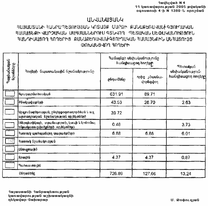 4 օգոստոսի 2005 թվականի N 1380-Ն