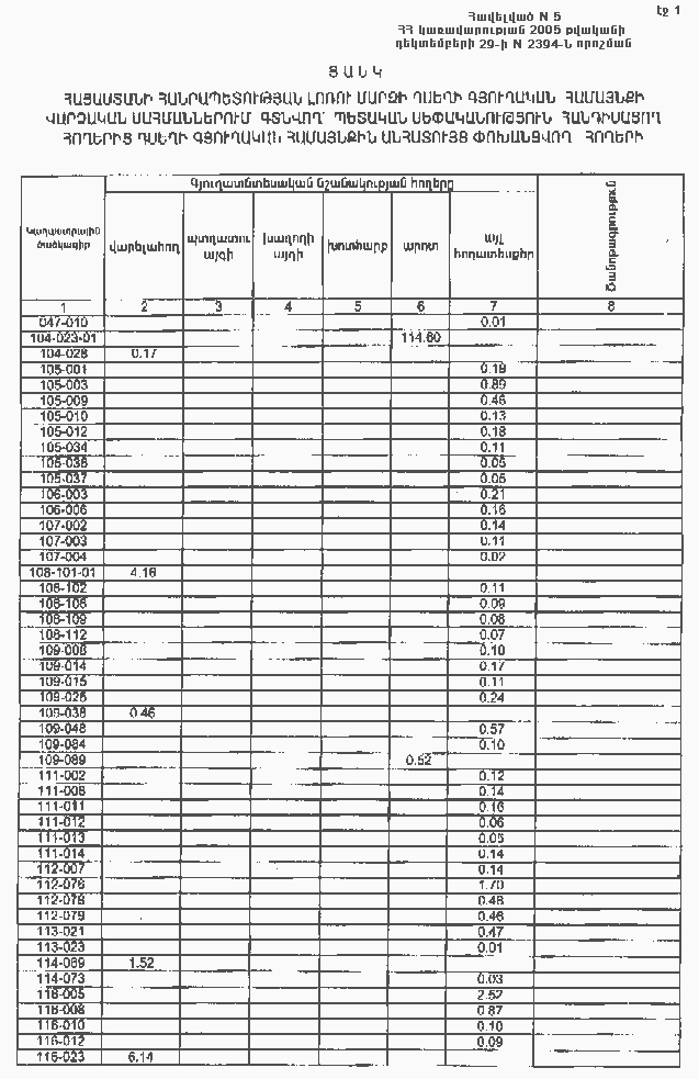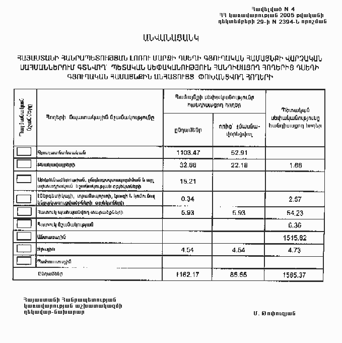 29 դեկտեմբերի 2005 թվականի N 2394-Ն