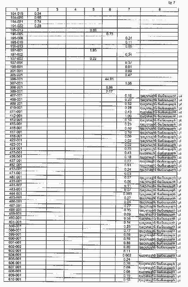 7. Հայաստանի Հանրապետության Լոռու մարզպետին` Հայաստանի Հանրապետության կառավարության 2000 թվականի հոկտեմբերի 23-ի N 656 որոշմամբ սահմանված կարգով` սկզբնական հաշվառման տվյալների հիման վրա ապահովել մարզի տարածքում ընթացիկ հաշվառման աշխատանքների իրականացումը: