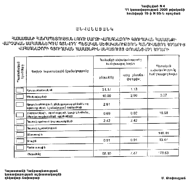 4. Ընդունել ի գիտություն Հայաստանի Հանրապետության Լոռու մարզի Վահագնաձորի գյուղական համայնքի հողային ֆոնդի առկայության և բաշխման մասին հաշվետվությունը` 2005 թվականի հունվարի 1-ի դրությամբ` համաձայն N 8 հավելվածի: