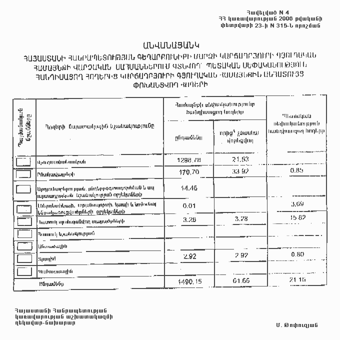 23 փետրվարի 2006 թվականի N 315-Ն