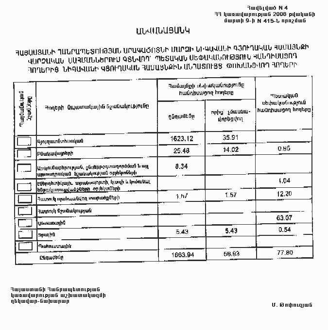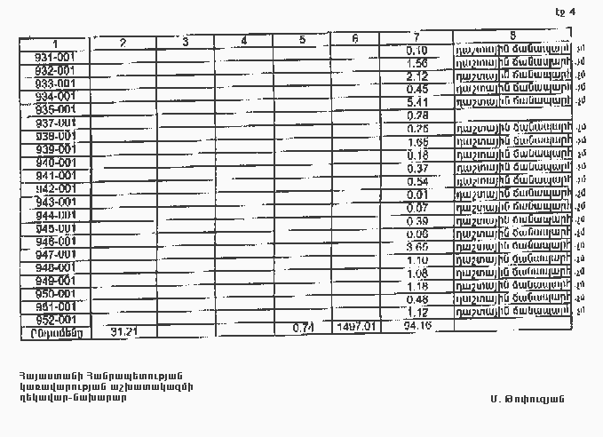4. Ընդունել ի գիտություն Հայաստանի Հանրապետության Արագածոտնի մարզի Նիգավանի գյուղական համայնքի հողային ֆոնդի առկայության և բաշխման մասին հաշվետվությունը՝ 2005 թվականի հունվարի 1-ի դրությամբ՝ համաձայն N 8 հավելվածի: