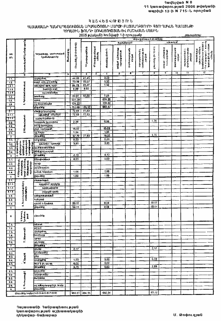 4. Ընդունել ի գիտություն Հայաստանի Հանրապետության Արագածոտնի մարզի Բազմաղբյուրի գյուղական համայնքի հողային ֆոնդի առկայության և բաշխման մասին հաշվետվությունը` 2005 թվականի հունվարի 1-ի դրությամբ` համաձայն NN 8 և 9 հավելվածների: