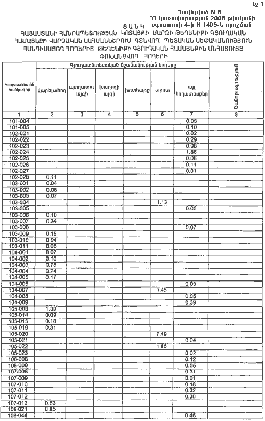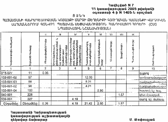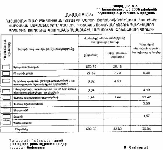 4 օգոստոսի 2005 թվականի N 1405-Ն