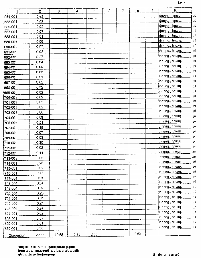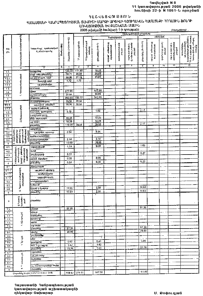 4. Ընդունել ի գիտություն Հայաստանի Հանրապետության Տավուշի մարզի Արճիսի գյուղական համայնքի հողային ֆոնդի առկայության և բաշխման մասին հաշվետվությունը՝ 2005 թվականի հունվարի 1-ի դրությամբ՝ համաձայն NN 8 և 9 հավելվածների: