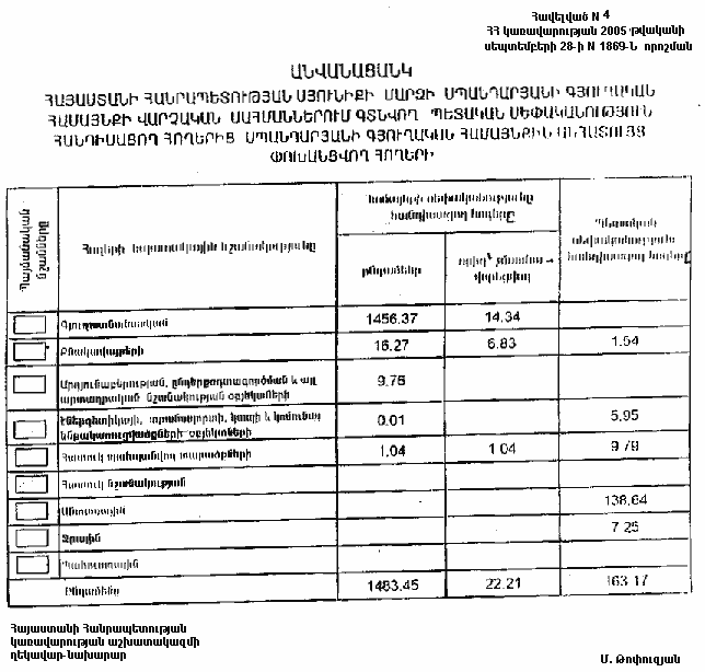 28 սեպտեմբերի 2005 թվականի N 1869-Ն