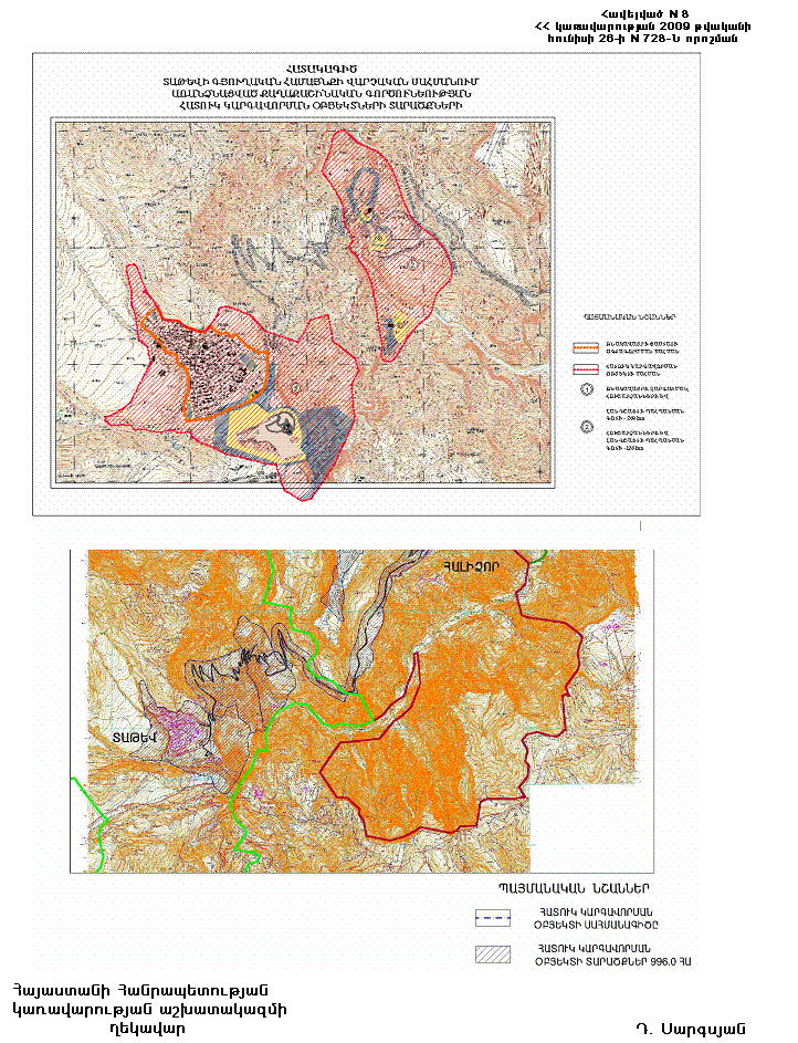 8) Տաթևի գյուղական համայնքի վարչական սահմանում առանձնացվող` քաղաքաշինական գործունեության հատուկ կարգավորման օբյեկտների տարածքները` համաձայն N 8 հավելվածի.