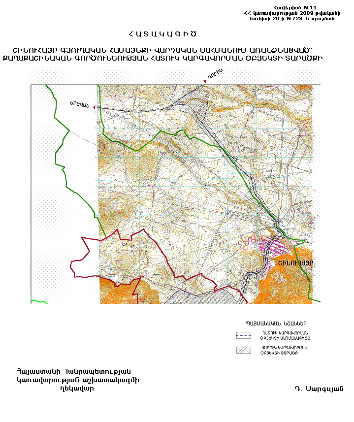 11) Շինուհայրի գյուղական համայնքի վարչական սահմանում առանձնացվող քաղաքաշինական գործունեության հատուկ կարգավորման տարածքը՝ համաձայն N 11 հավելվածի: